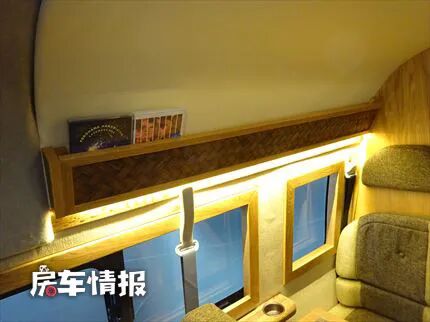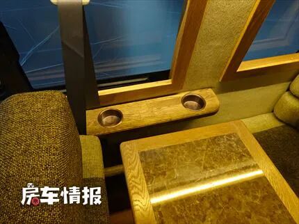 另外这款房车还有一些人性化的小细节,比如乘客门处的雨伞架、会客区上方带有照明灯的杂志架以及下方两排座椅之间的饮料架,都设计的非常人性化。