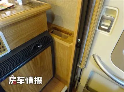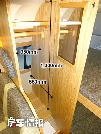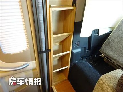 前方生活区和后方休息区的中间过道处两侧各提供的储物空间,可以存放衣服或鞋子。