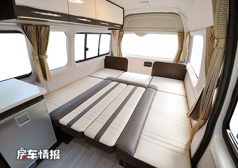 水电方面,全车配备了100Ah的超高性能深循环子电池,并提供5个室内LED照明设施,水路上则提供了19L的净水箱。