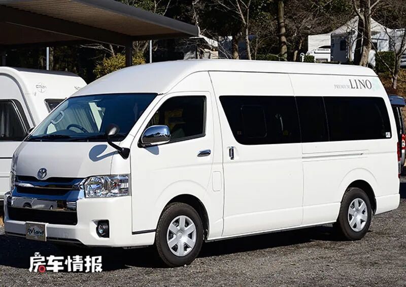 今天给大家介绍一款内部设计非常有意思的房车——丰田 Premium Lino。这款房车是基于丰田海狮的底盘改造的,全车的长宽高尺寸为5380mm*1880mm*2285mm,车身颜色为白色。