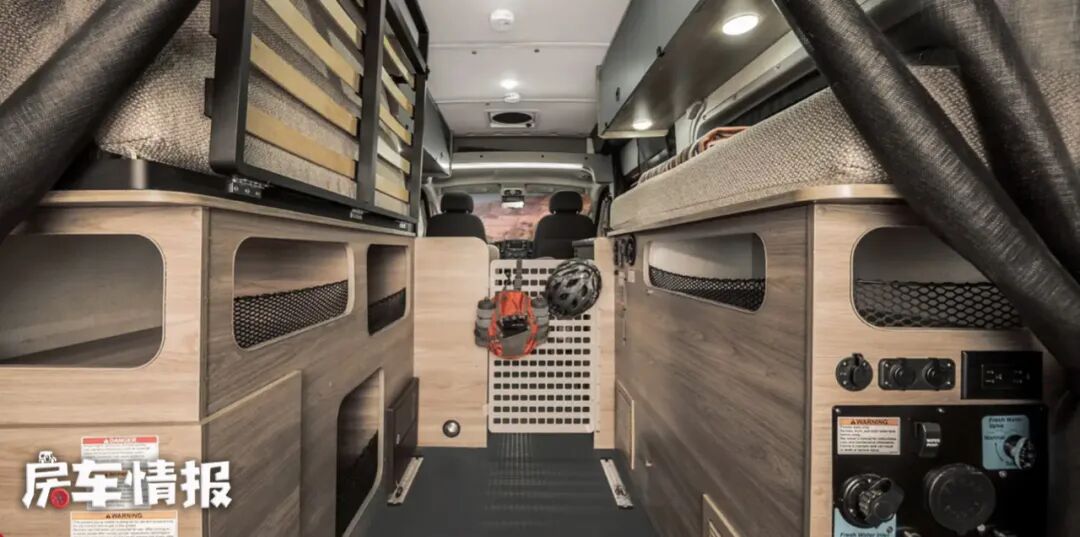 水电方面,这款房车配备了170W的太阳能充电板和双深循环AGM电池,水路上则提供了76L的净水箱和76L的灰水箱。