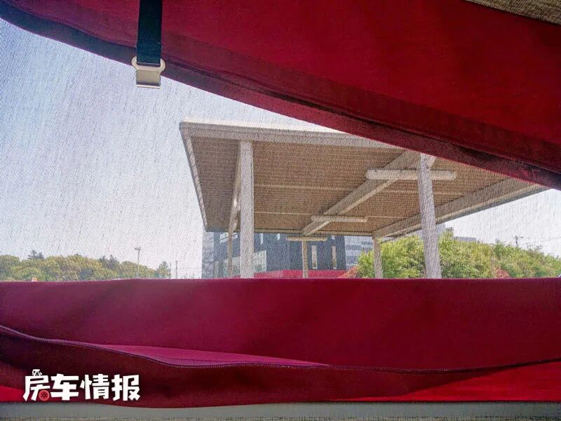除去这张建议的双人沙发床之外,在顶部的拓展机构内也提供了一张床铺,尺寸为1800mm*1000mm,可以睡两个小朋友或者一个成年人。顶部还带有一个吸顶灯,能够保证升顶区域内的亮度,同时左右都带有通风换气的防蚊网。