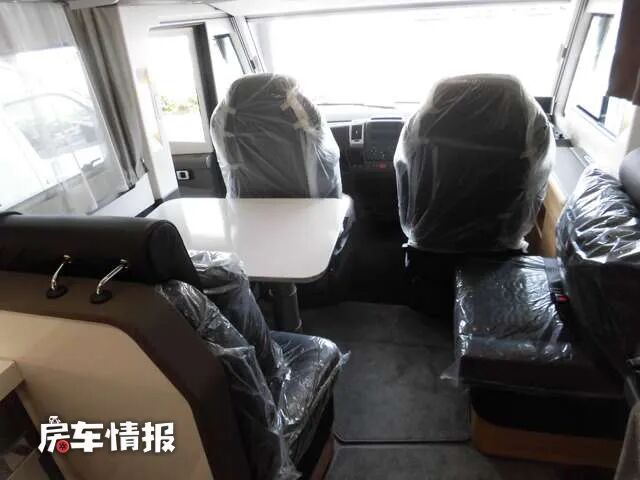 内部的空间布局和我们常见的房车布局相当,驾驶室后方是全车的会客区,虽然这么庞大的一辆车,却只提供了三个人的沙发座椅,所以整辆车在行驶路程中最多可以核载5人。