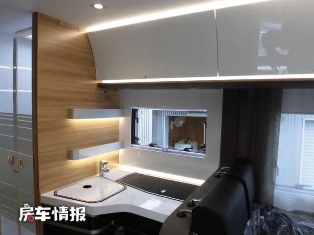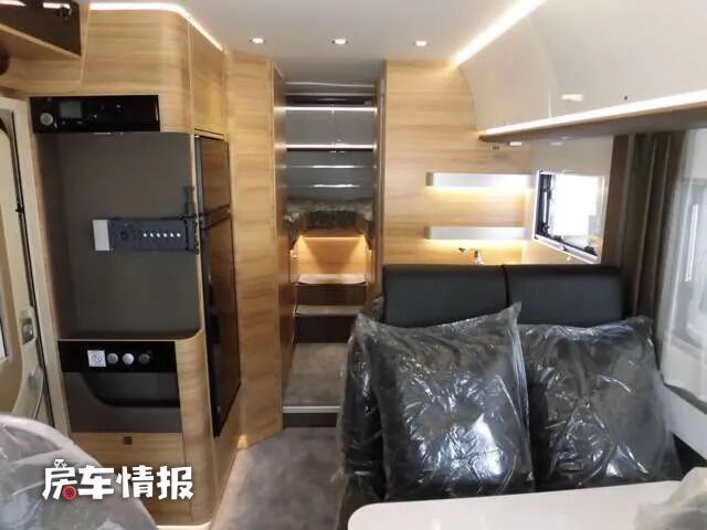 进入车厢内部可以感受到与其他房车不同的宽大感,并且采用了木质家具,非常的商务时尚。