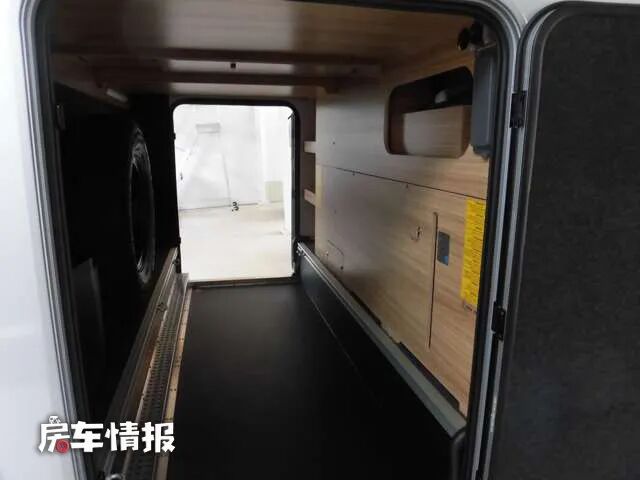 全车以金属银色为主色调,搭配了黑色的线条装饰,科技感十足,车身外部配置了水电接驳口、外置灶具以及车厢尾部的超大尺寸的左右贯通式行李舱,可以装载一辆自行车。