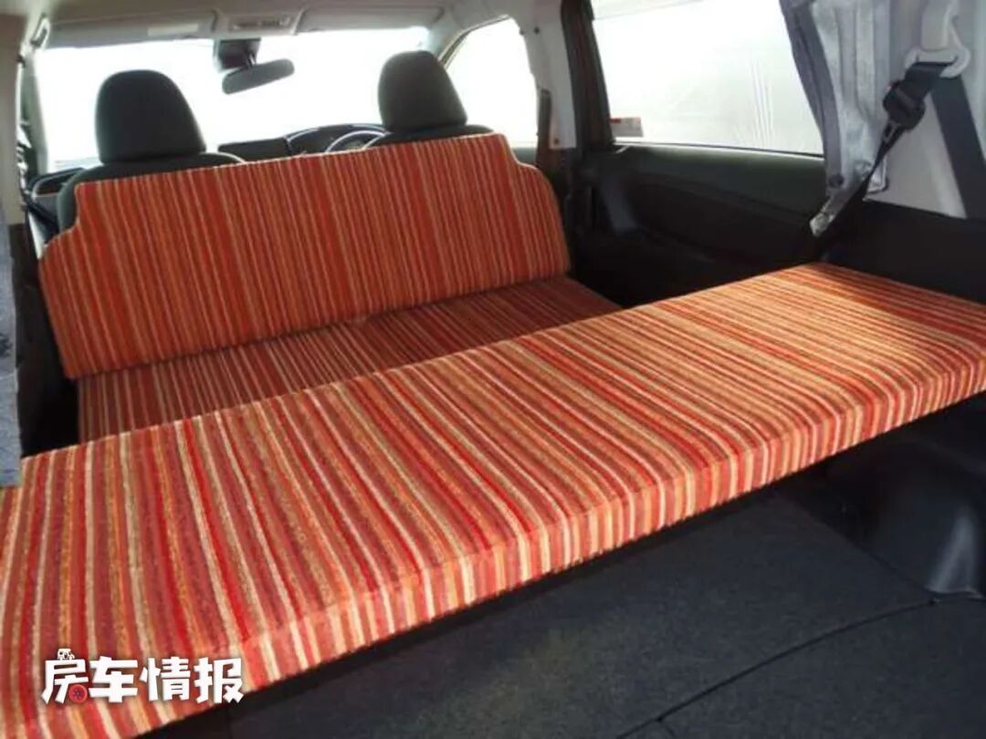 整车的内部保留了原始的乘客座椅,平时作为家用车完全不受影响,改装的地方位于车厢尾部,在原本的后备厢上搭建了一张折叠床垫,这样结合前方的座椅,需要临时过夜的时候也可以作为一张睡床使用。