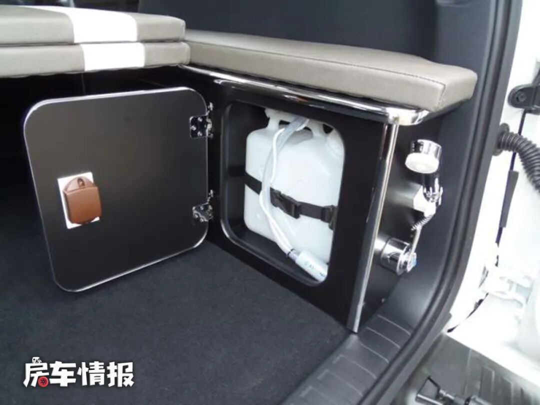 另外在床垫下方的储物箱体内,还提供了净水箱和灰水箱,并配备了水龙头,简单的刷牙洗脸也可以满足。