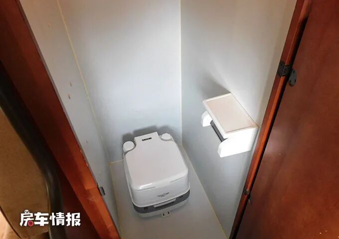 因为整车内部空间有限,所以卫生间内只提供了一台便携式马桶,并不具有可以洗澡的设备。