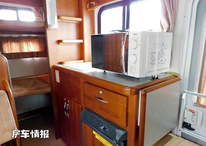 整车的厨房操作台还是配置了比较丰富的厨用设施的,包括一台40L的冰箱、微波炉、水槽以及卡式炉,也可以满足出行的基本烹饪需求。
