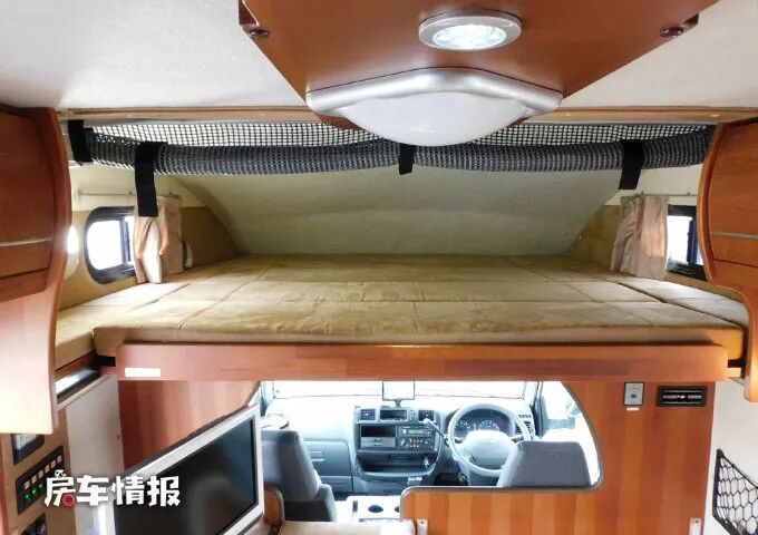虽然是一辆高度不到2米7的房车,但是在额头内部还是提供了一张双人额头床,虽然相对于3米多高的大额头房车来说,整体的空间会显得压抑,但是即便平时不用作休息区使用,也可以用来充当储物空间。