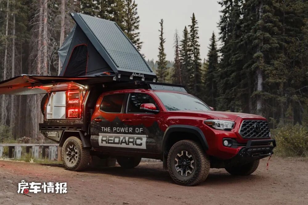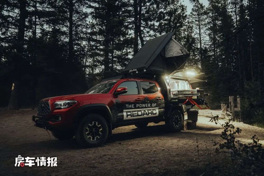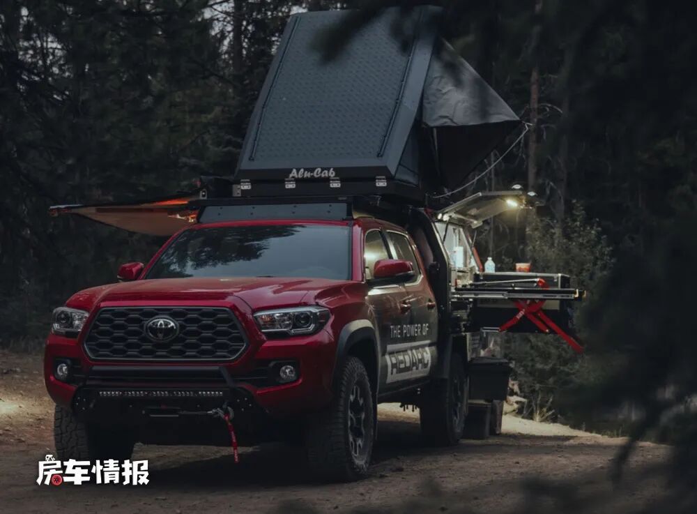 这款车是基于丰田的Tacoma(塔科马)皮卡底盘所打造的一款带有越野功能的露营车,之所以称之为露营车,因为它并不具备我们常见的房车箱体结构,并不属于真正意义上的房车。