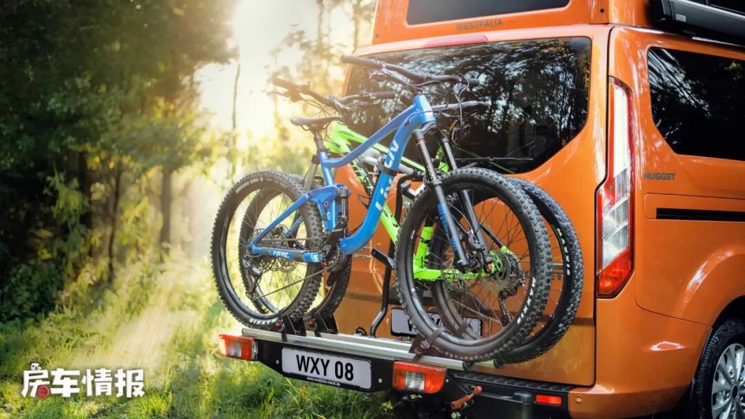 尾门放下以后有自行车架,可以放置自行车,在郊外骑行也是不错的休闲项目。