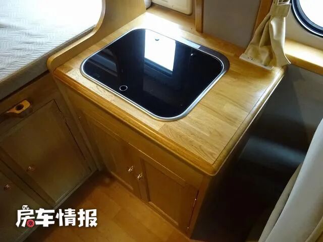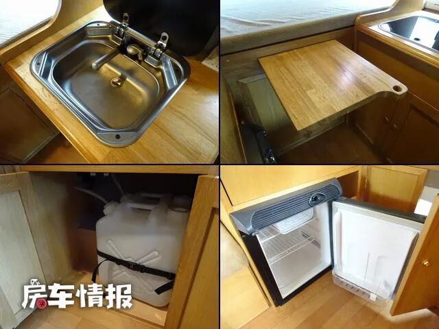 单人沙发后方是全车的厨房操作台,台面上提供带盖的不锈钢水盆,平时可以简单的冲洗瓜果蔬菜,后期结合卡式炉,也可以满足简单的烹饪需求。