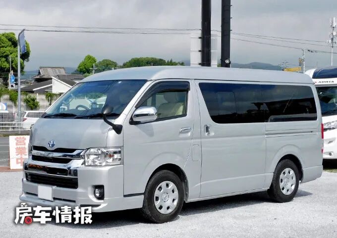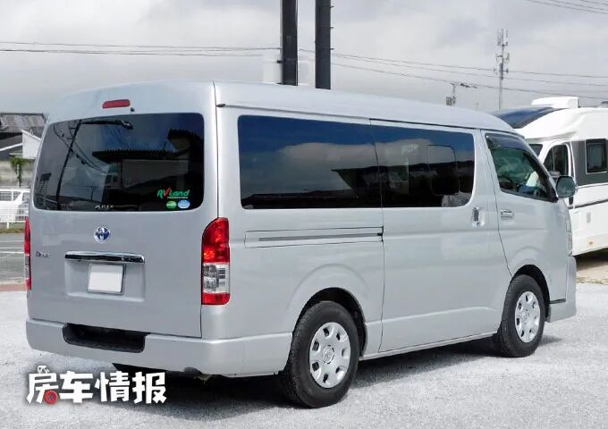 这款车是基于超长轴版的丰田海狮底盘所打造的,全车的长宽高尺寸为5380*1880*2060mm,保留的海狮的原车原貌,银灰色的外观显得十分低调。