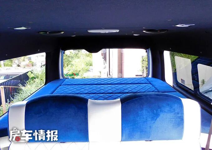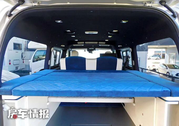车厢尾部取消了第三排座椅,取而代之的是横置的双人尾床,平时可以容纳两个成年人在这里睡觉休息使用。