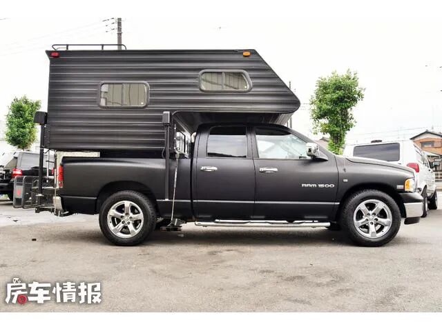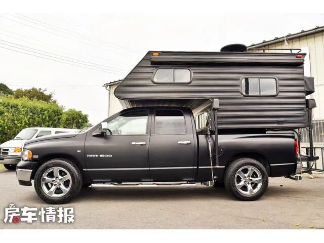 那么今天我们要介绍的这款房车就是属于拖挂式D型房车,基于道奇皮卡房车改造而成,整体的尺寸为5780*2030*1930mm,后车厢也采用了同前皮卡一样的颜色,看起来更加协调。