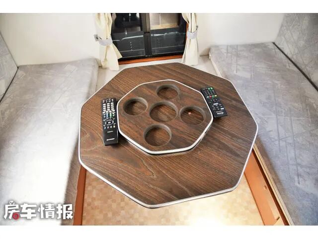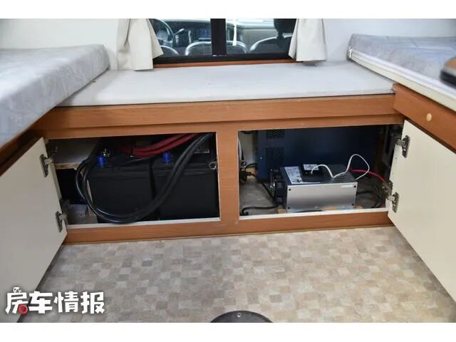 电路上,这款房车搭载了一台逆变器并提供了2块副电池;水路上也提供了净水箱和污水箱,同时全车还配备了空调和电视,可以满足基础的生活所需。