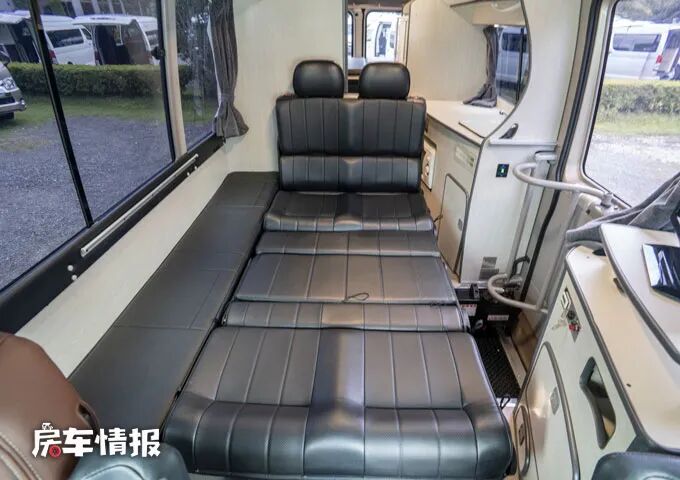在电路上,这款房车搭载了一台3000W的逆变器,提供4块75Ah的副电池,并且带有发电机以及车身外部充电接口,可以保证车内用电的需求;水路上则提供了20L的净水箱和20L的副水箱。