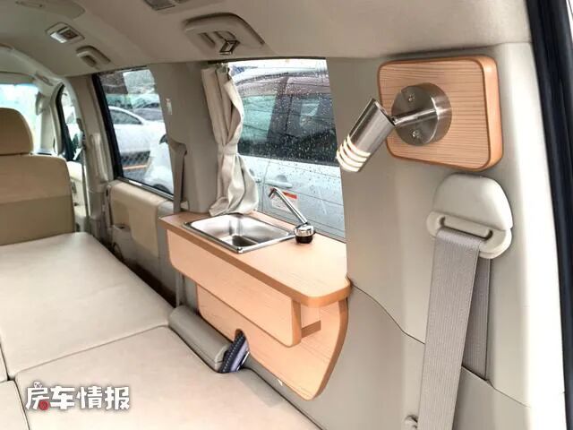 而另外一侧则提供了一个小型的不锈钢洗手盆,可以满足旅行途中简单的洗漱需求。
