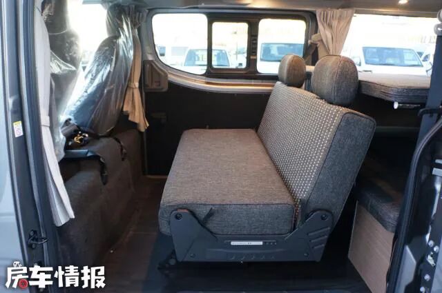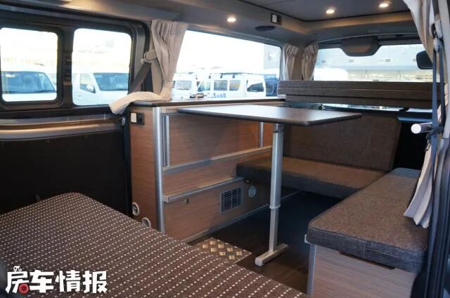虽然这款车顶部带有升顶机构,但是上方并没有提供可以睡觉的床铺,更多的是为了保证车内的空间而设计的,所以整辆车最多可以为4个人提供休息的地方。