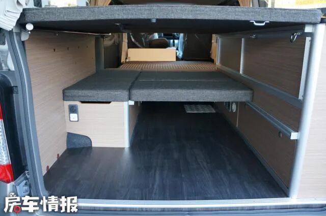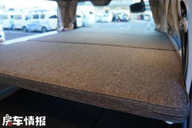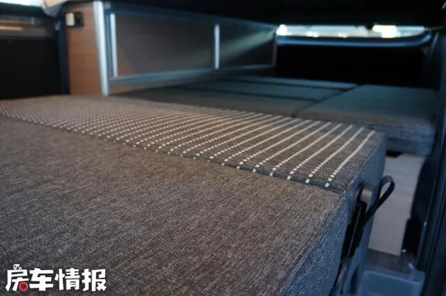另外这辆车还提供了额外的折叠床垫,铺在操作台和另一侧的支撑杆上,可以形成一个双人的上床,也能够满足两个人睡觉的需求。