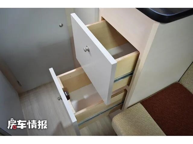 与之相对的是一间独立的房间,内部带有便携式马桶,后期也可以按需改造成一间可以满足出行基本洗漱需求的卫浴室,使整辆车在意义上可以成为一辆真正的房车。