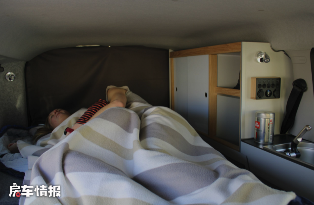 而车厢尾部的尾床也比我们想象中要宽敞很多,这张折叠床的尺寸达到了2000*1200mm,对于一辆露营车来说,这样的配置是非常难得的。