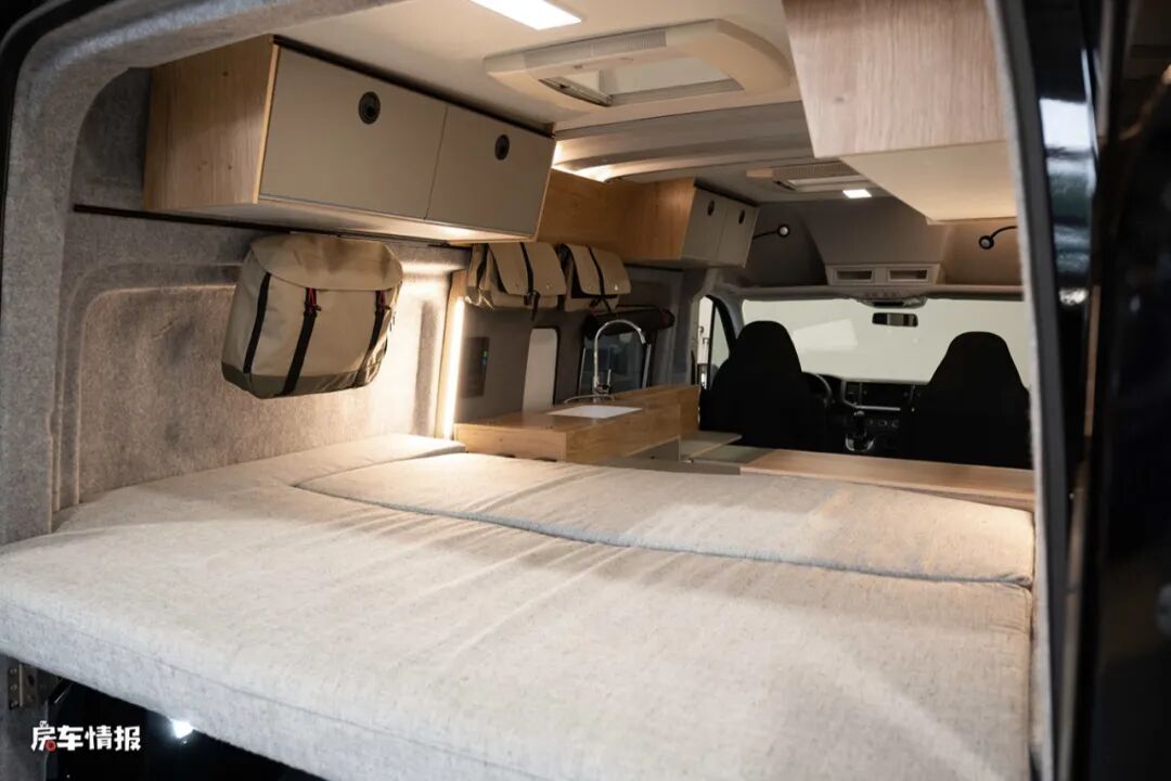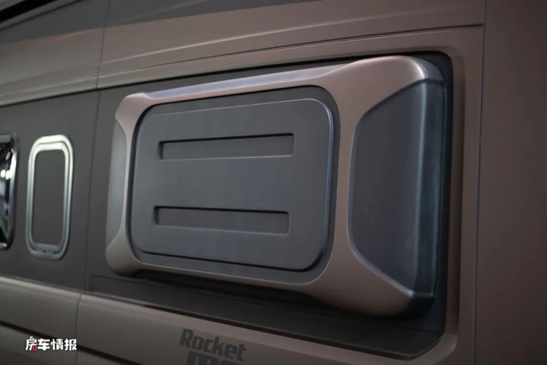 另外这款房车还有一个其实我们之前有在国内房车上看到的高曲面后盲窗设计,这种设计也是为了可以保障车内睡床能达到一个舒适的居住效果而加入的。