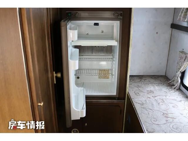 纵置尾床旁边是一台单开门的车载冰箱,内部带有单独的冷冻区域,也可以很好的分类存储食材。