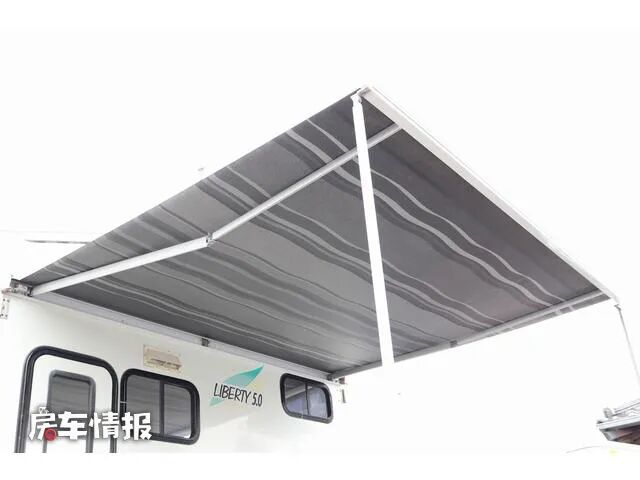 整车的还是采用了白色为主色调,底围为棕色,整体看起来比较低调简约,车身外部提供了手动的遮阳棚以及储物舱,可以满足基本的生活需求。