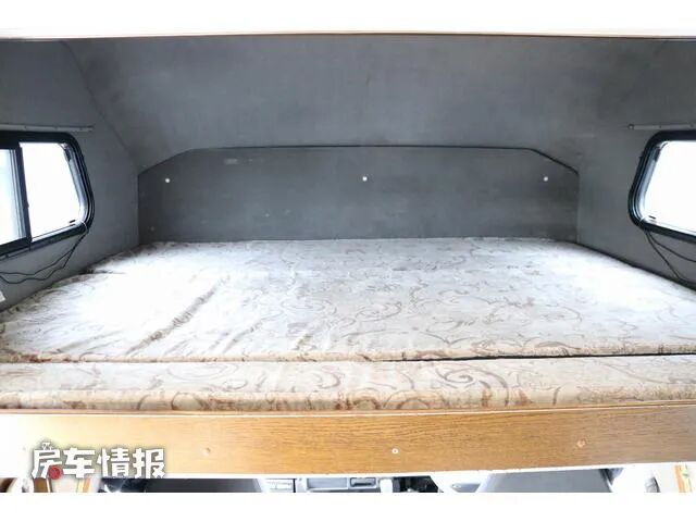 在最前方驾驶室上方的额头区域内提供了一张尺寸为1900*1500mm的额头床,两侧带有推拉窗,既保证了采光也可以通风换气使用。