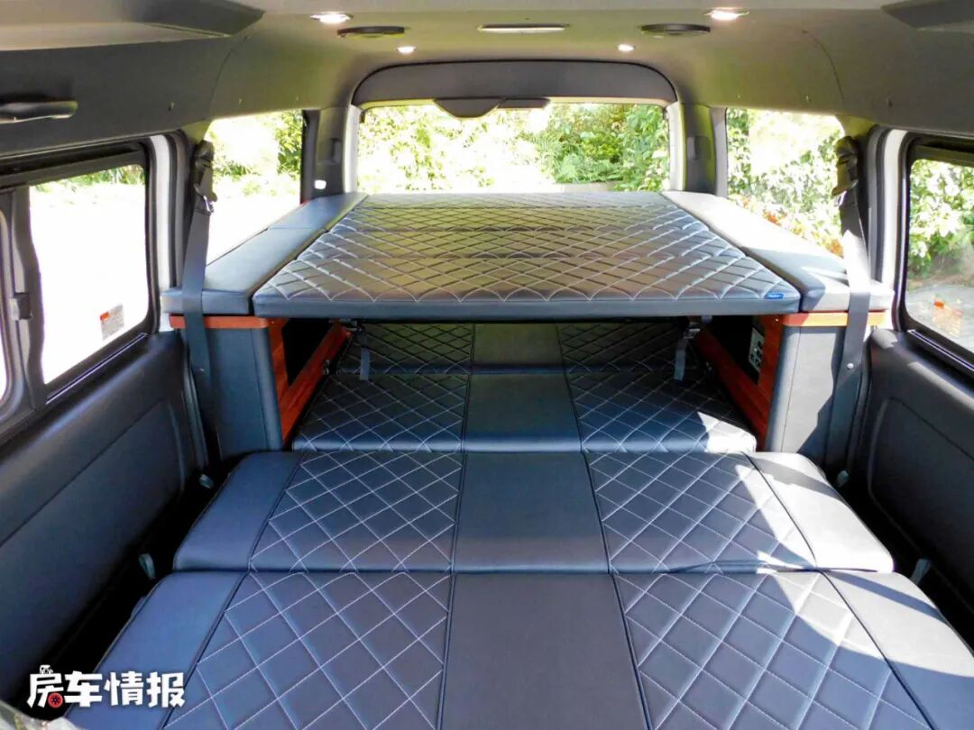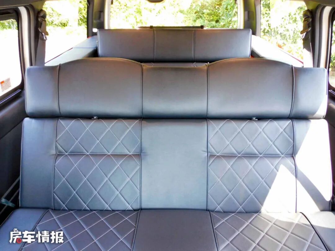 晚上需要休息的时候,就可以将第二三排乘客座椅放平组合成一张可以容纳两名成年人使用的沙发双人床,而且因为座椅可以完全放平,所以平时睡觉的时候也不会感觉到不适感。