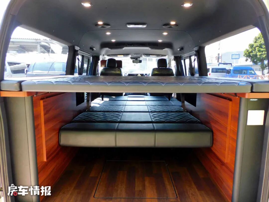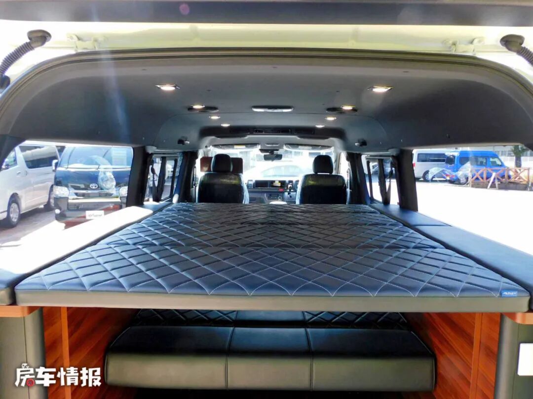 丰田海狮作为日本床车的首选底盘,不仅有普通版本,还有加长轴版本的,不过虽然是加长轴的底盘,但是整体的车型尺寸还是属于比较适中的类型,下面我们一起来看看这款床车吧~