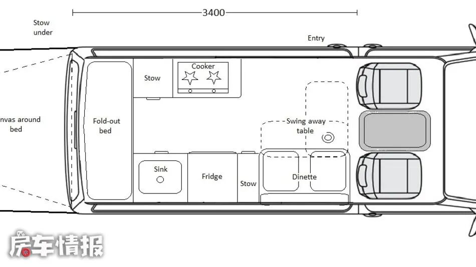 在内部,Bus 4x4使用后帐篷扩展作为基础,努力为其提供更大的使用空间。 弹出式提升门,折叠式地板的设计使空间利用度更高。 帐篷顶通过多条可调节的带子固定在大门上,当不使用时可以拿掉。内饰的设计则一如既往的强调实用性!仪表板也因为车身的关系而变得更加的宽大。大量规则的图形构成了新一代丰田Hiace的内饰,辅以丰田系特有的材质,呈现出了一种日式的设计感觉。由于发动机进行了前移,所以第六代丰田Hiace的前排座椅也不再像老款车型那样高高在上,这对于整车内部空间的通透性大有助益。