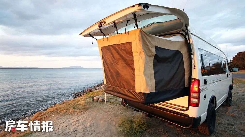 今天给大家介绍一款,由澳大利亚房车公司生产的新型4x4丰田露营车,它依靠着独特的下拉式可扩展帐篷的设计在许多车型中脱颖而出。帐篷挂在后挡板上,提供了一个更加有趣的露营体验。这一设计还为车内会客区留出了空间,可谓是一举两得。这款车采用的是同兰德酷路泽Prado一样功能强大的bus 4x4系统,这是一个专门为在极端严酷条件下驾驶而设计出的一款四驱系统,非常适合酷爱越野的朋友们。