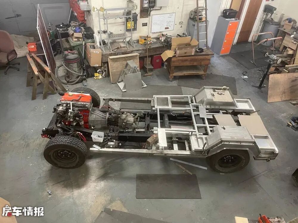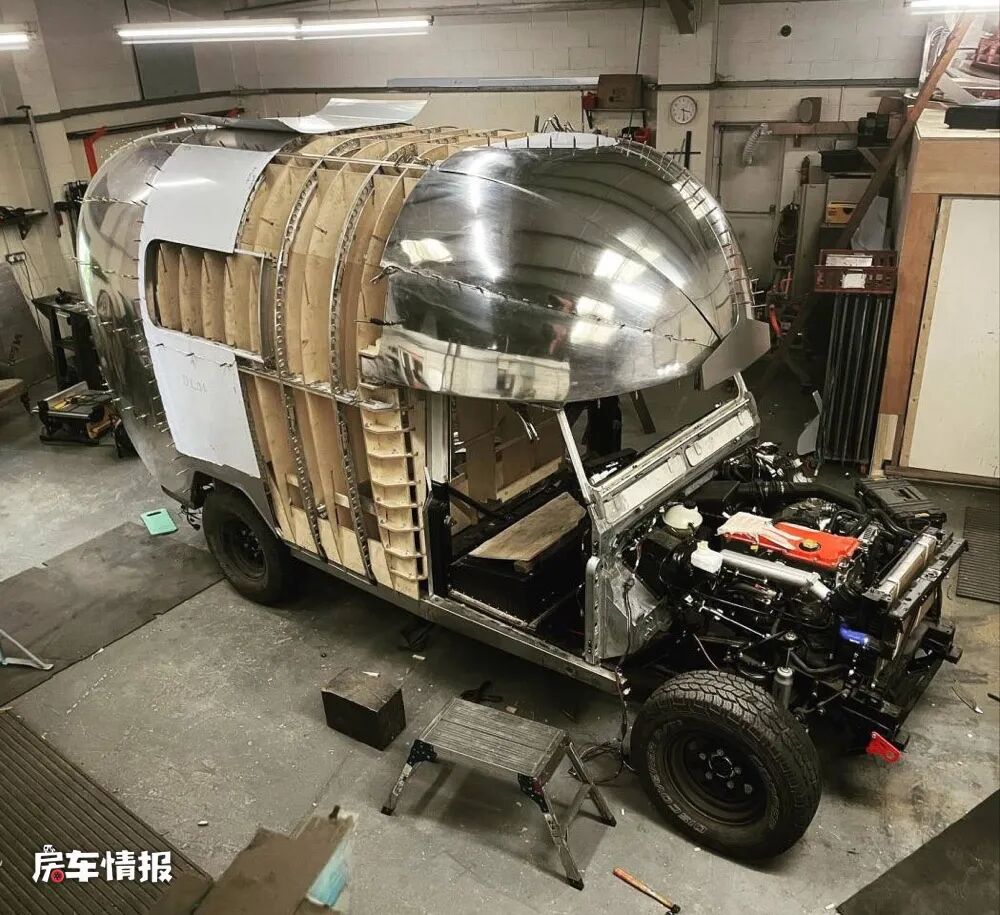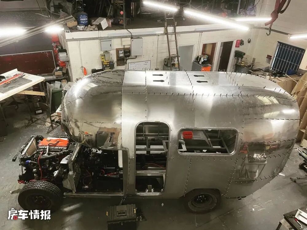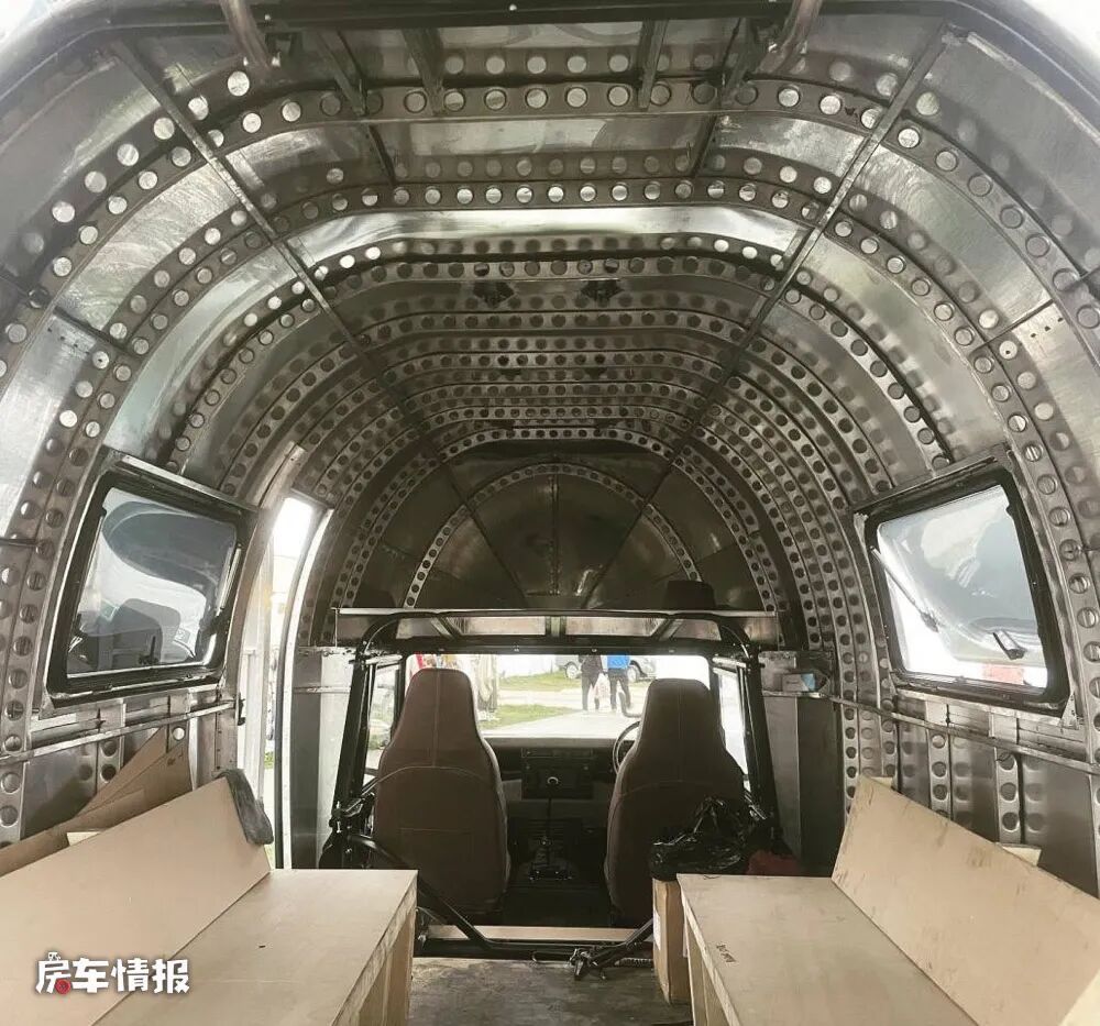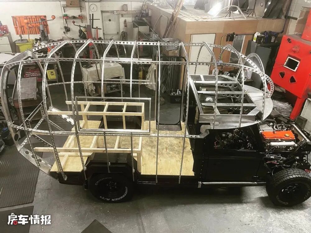 为了将生活舱与底盘更好的融合在一起,首先先是组装了一个数控切割的骨架木块,用来形成铝制框架和手工形状的外板,当铝皮和骨架完成之后,从内部取出木板,通过外壳上的铆钉连接,最终组装成整体的车架和车身面板。