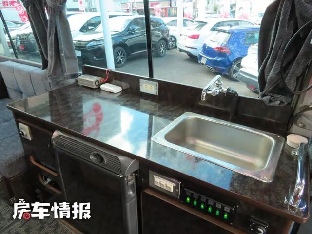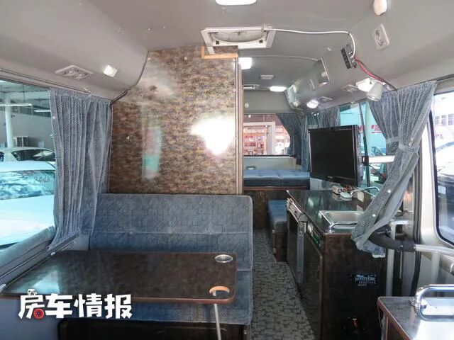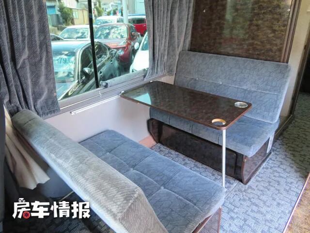 虽然是一辆中巴改装的房车,但是进入到车厢内部可以看到整体的布局还是采用了一个比较传统的日本房车布局,内部的装修和外观也很匹配,比较低调。