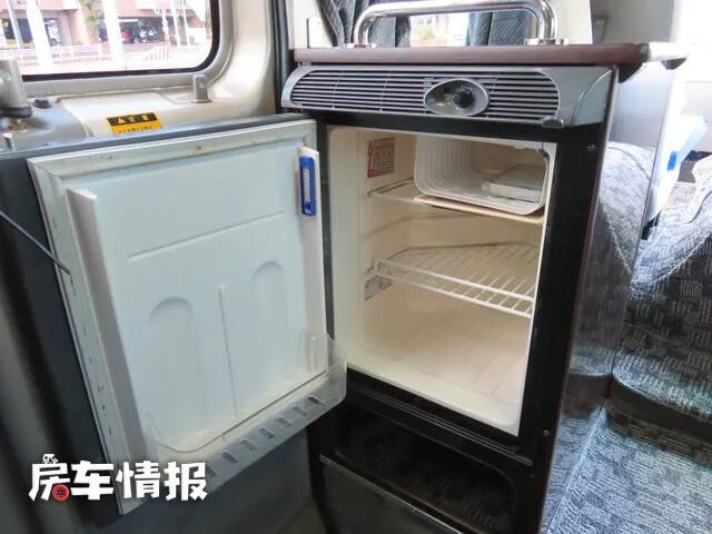 临近乘客门后方的厨房区比平时的设计要加长了不少,另外还兼具着电视柜的作用,台面上也配备了大尺寸的不锈钢洗菜池,下方则提供了车载冰箱,结合卡式炉,也可以完成简单的烹饪需求。