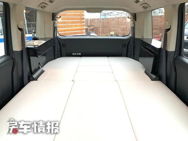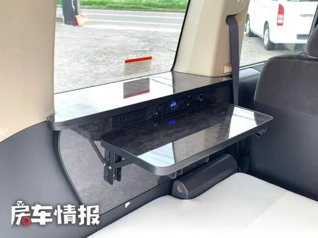 和普通的床车相比,这辆车也加入了一些其他的生活配置,包括左侧后方提供了翻折的小桌板以及充电接口,后期也可以为手机或其他电子设备充电,使用起来也更加方便。