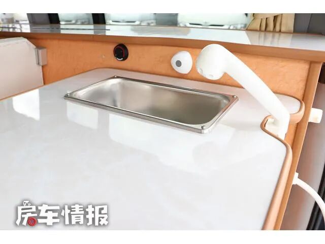 电路上,这款车并没有配备逆变器,而是提供了一块副电池,同时在车外配备了可以充电的电源接口,以保证全车的电力系统,水路上则配置了净水箱和副水箱,以满足基本的生活需求。