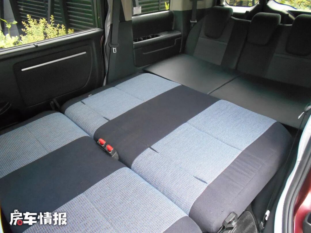 晚上需要休息的时候,则可以将第二排座椅展开,与第三排座椅相互连接组合成一张沙发床,整体的尺寸也可以容纳两个成年人使用,而且座椅打开后相对比较平整,也能带来良好的睡眠体验,因为在一辆床车中,因为不具备其他丰富的生活配置,所以最注重的还是睡眠感受。