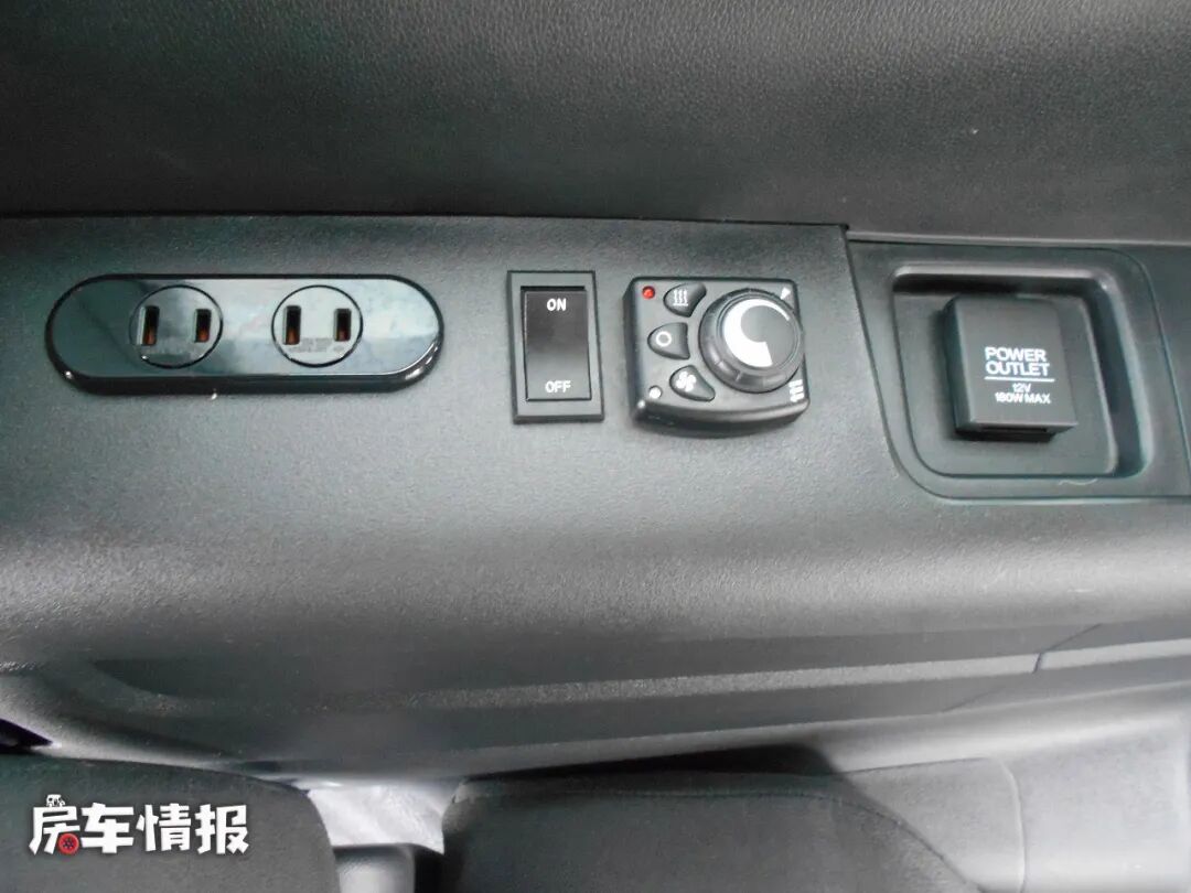 在电路上,这款床车不仅标配行车电路,也提供了副电池,同时还配置了可充电的接口,可以为房车的电力提供补给功能。