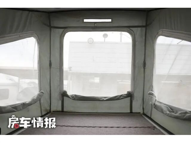 除此之外,打开车顶部的升顶机构,还可以得到位于上方的一张双人床,所以整车最多可以容纳四个人睡觉休息使用。