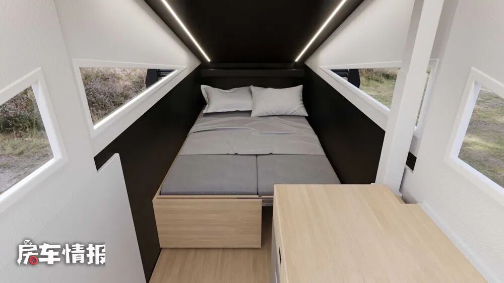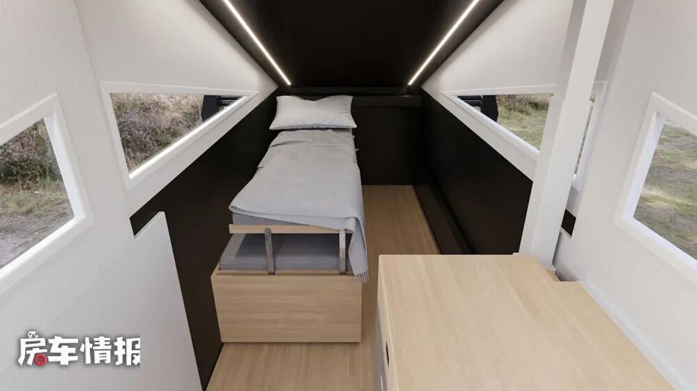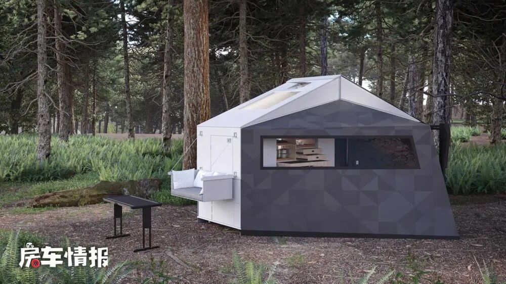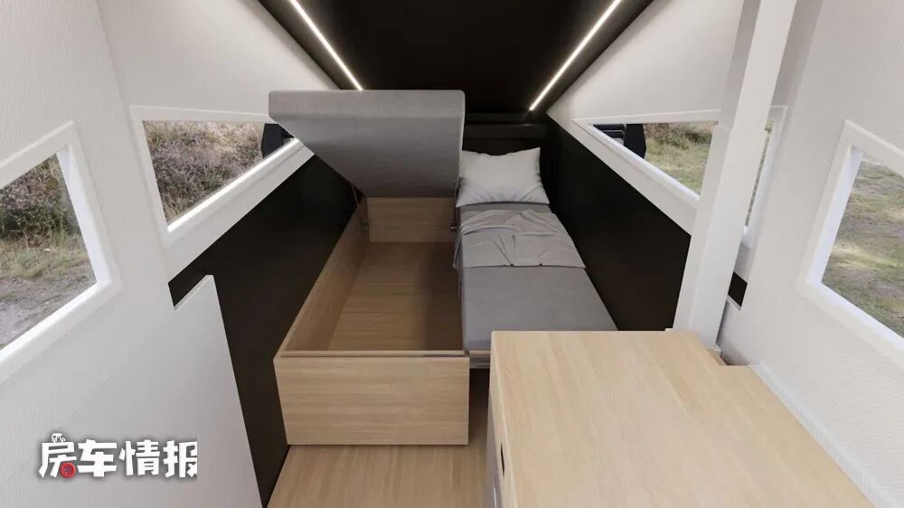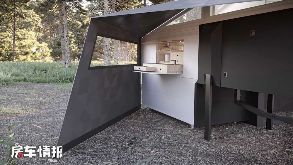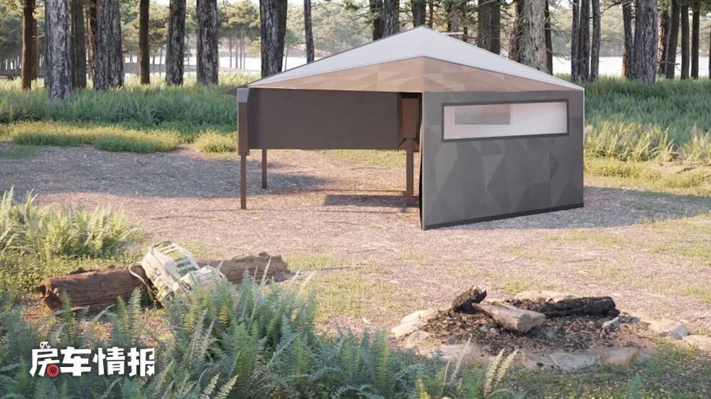 平时的形态为一个箱体,位于车尾部,当驻车露营时,就可以打开后方的组件,形成一间独立的起居室,其面积可达到6.6平方米。