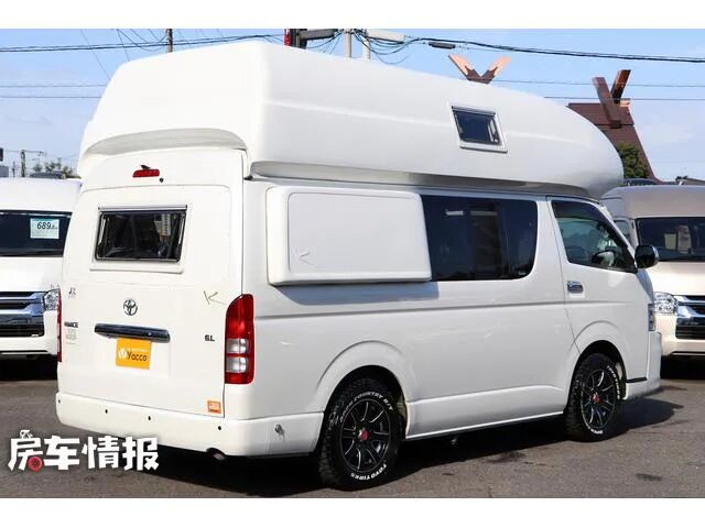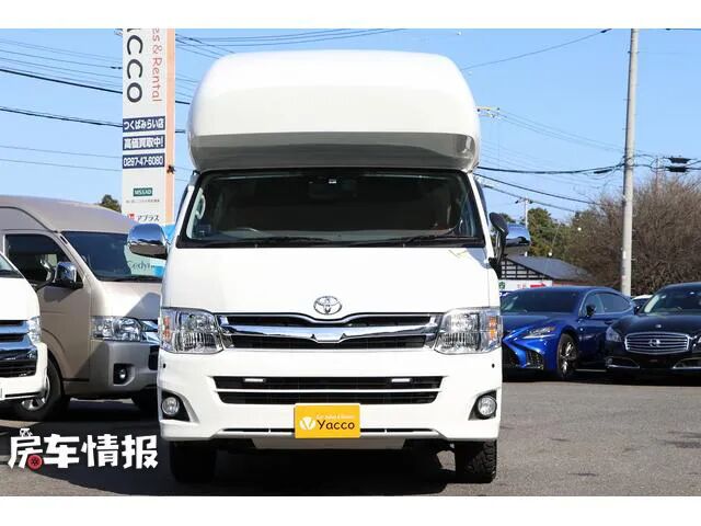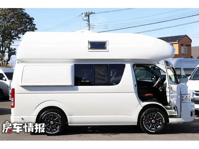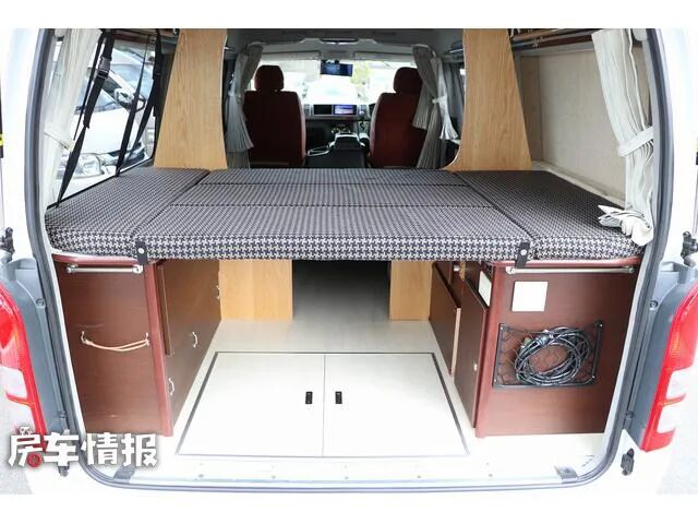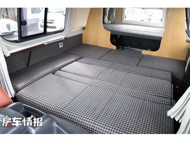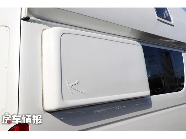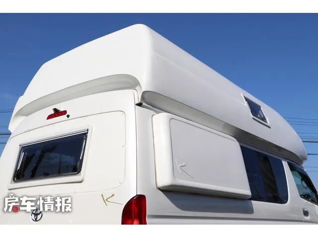 这辆车最奇特的地方还是整体外观,既不是 一辆普通海狮床车,也不是以海狮作为底盘打造的C型房车,而是在丰田海狮车的顶部加入了一个固定式的升舱区域,同时在车身右侧后方还做了盲窗处理,整体的车身尺寸达到了4840*1950*280,相比一般的丰田海狮床车增加了不少的空间,另外下方的原底盘也保留了整体,可以使整车的安全性更高。