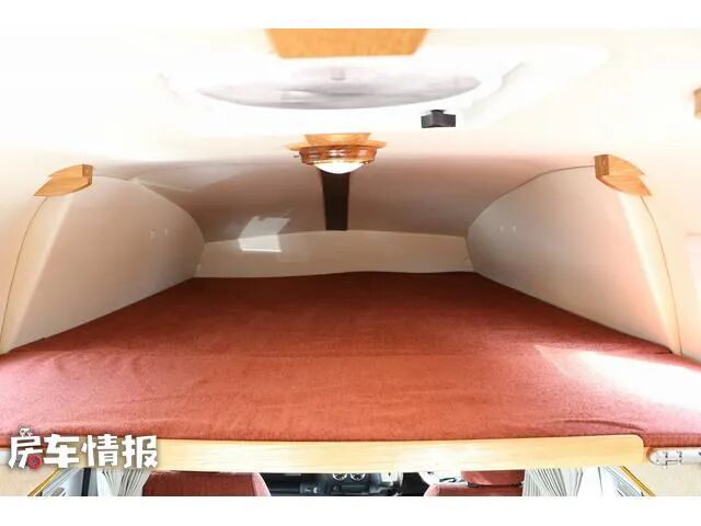 看到这里您可能会问第三张床在哪里?其实答案就是顶部的升舱区内,还提供了一张双人床,所以这样一辆长度不足5米的车内居然设计了三张双人大床,而且互相也不干扰,也没有使整体的空间变得压抑。