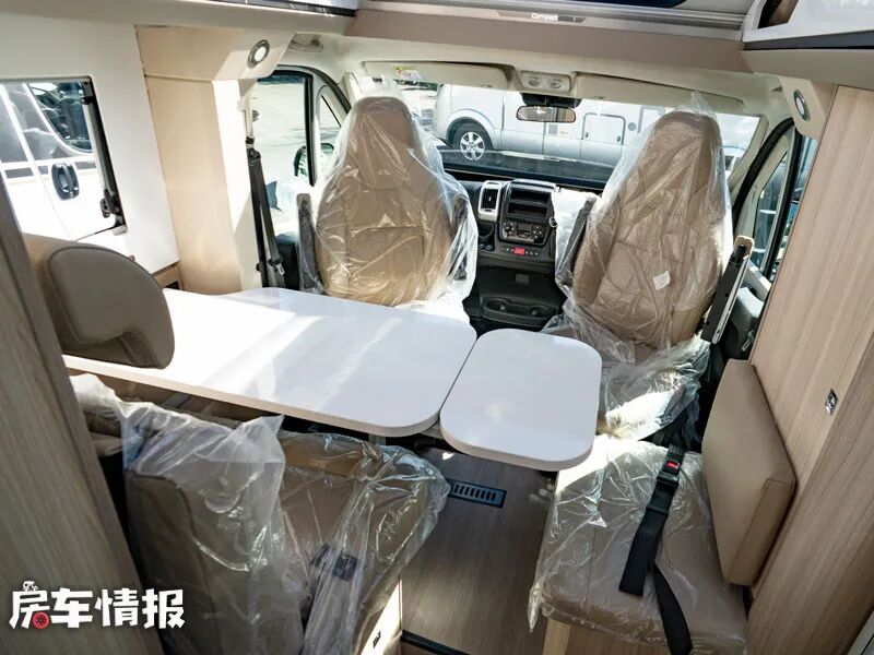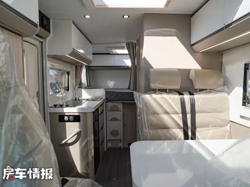 虽然外观整体相比标准大额头的C型房车来说有些小巧,但是车内的空间布局还是比较规整清晰的,内部的径直高度也达到了1980mm,即使身材高大的人也可以满足正常的直立。