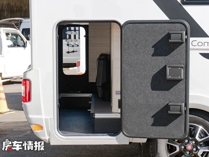 全车外观为金属银色,低调又耐脏,车身右侧上方带有手动的遮阳棚,尾部则提供了一个左右贯通式的储物舱,存放平时旅行时所携带的行李还是可以满足的。