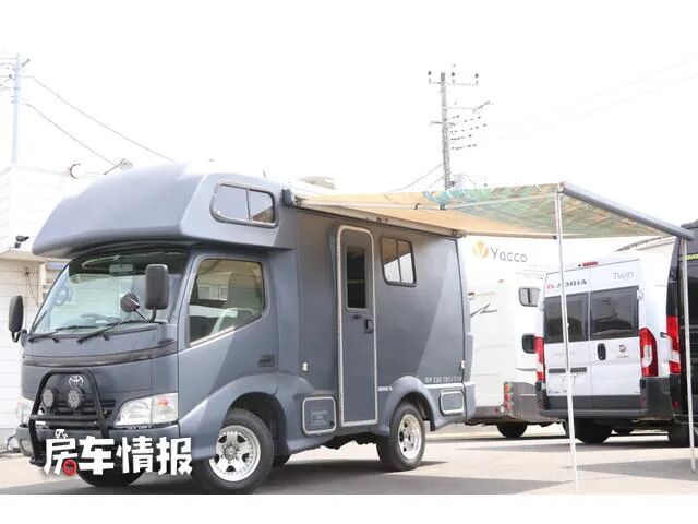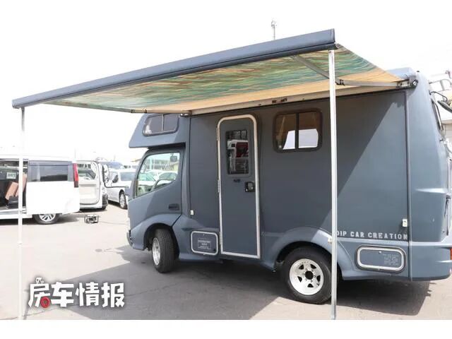 这款房车是基于丰田Dyna轻卡底盘所打造的一款房车,和主流的日本房车相比显得硬气了不少,不过整体的车身尺寸也只有4770*1900*2780mm,不到5米的车身尺寸相比国内主流的轻卡房车来说还是紧凑了不少。