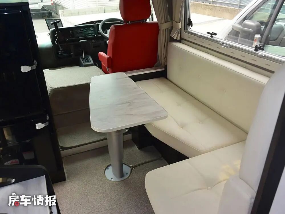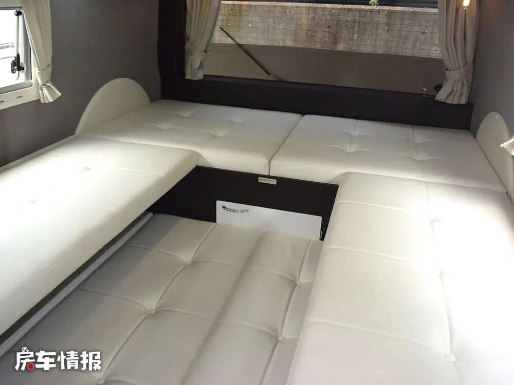 进入车厢内部,整体的装饰还是挺雅致轻奢的,和我们一般常见的日本房车内部相比要提升了不少,由于底盘的优势性,整体的空间还是非常宽敞明亮的。